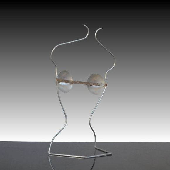 Extrem seltene „Modernist Mannequin“(Büste), Entwurf des Designers und Künstlers Renè Herbst(Geb. 1891 – Gest. 1982), Mitglied und Präsident der Union des Artistes Modernes (UAM) und einer der führenden französischen Art Deco Stahlmöbeldesigner und Innenarchitekten. Er studierte in London und Frankfurt und unternahm Studienreisen nach Russland und Italien. Aluminium und Messing. Höhe 55cm. Frankreich, 30er Jahre.