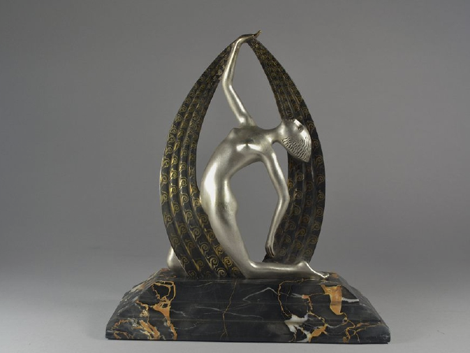 Art Deco. Versilberte, partiell dunkel patinierte Bronze-Skulptur…